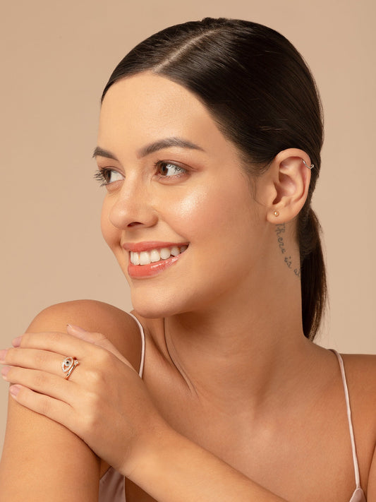 Cute Evil Eye Adjustable Ring - Rose Gold