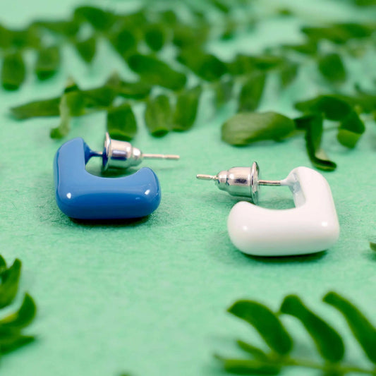 Asymmetric Square Enamel Small Hoop Earrings - Blue White
