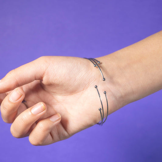Pearl Ball Bangle Silver (Set of 3)