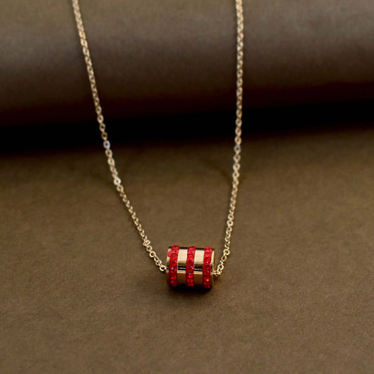Red crystal accent cylinder anti-tarnish necklace