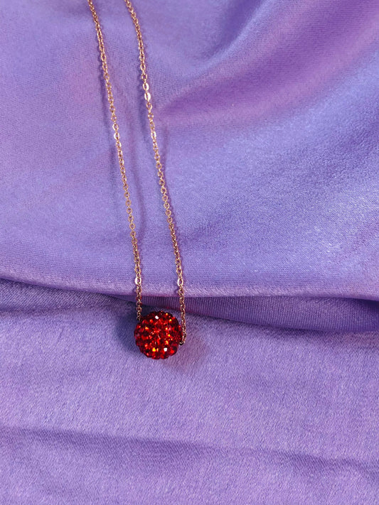 Red Disco Ball Charm Necklace- Stainless Steel