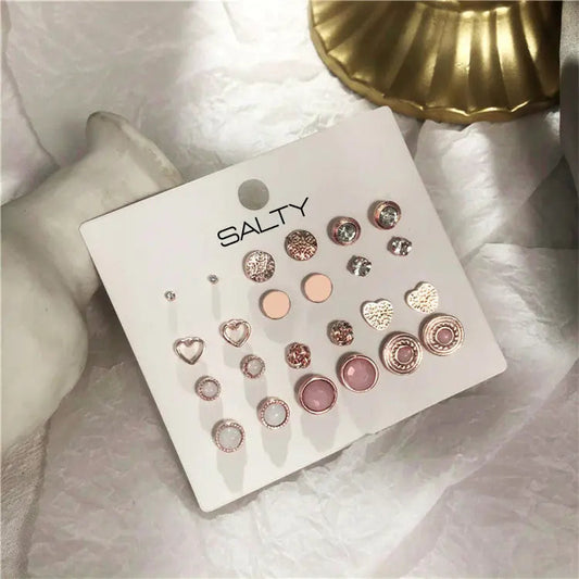 Set of 12 Bombshell Pink Everyday Minimalist Stud Earrings