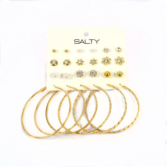 Set of 12 Trendy Everyday Studs and Hoops - Gold