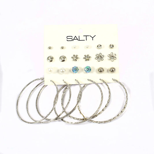 Set of 12 Trendy Everyday Studs and Hoops - Silver