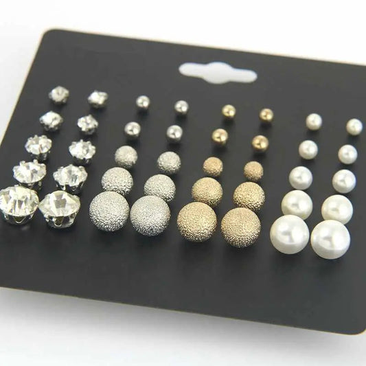 Set of 20 Pearl, Zircon and Frosted Beads Stud Earrings