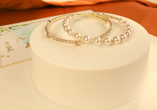 Set of 2 pearls and zircon bracelet- Golden
