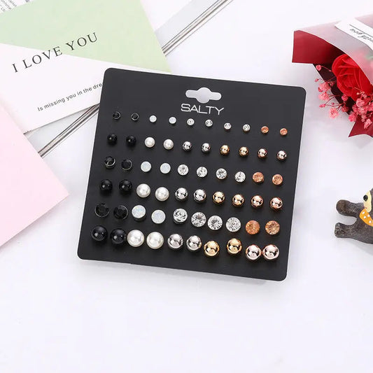 Set of 30 Everyday Office Pearl and Crystal Stud Earrings
