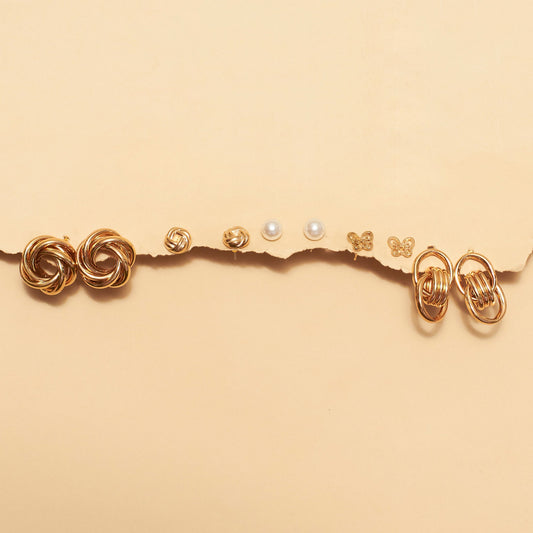 Set of 5 Lustrous Golden Earrings