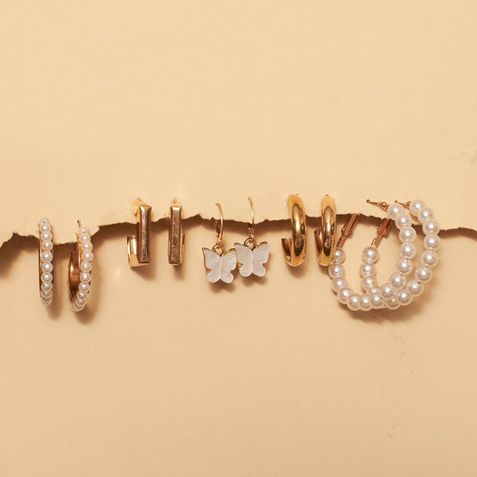 Set of 5 Pearl Minimal Hoop Set