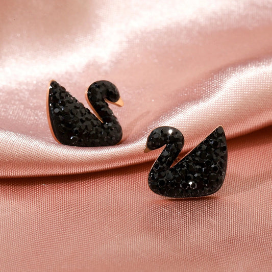 Shinning Swan Stud Earrings - Black