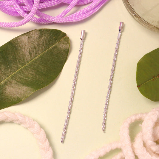 Silver Simple Wave Tassel Zircon Line Threader Earrings