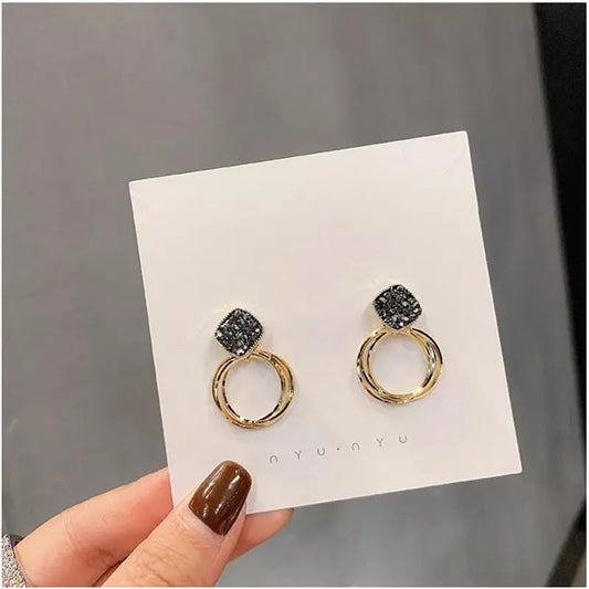 Stripes Inlaid Metal Gold Plated Clip on Cuff Earrings