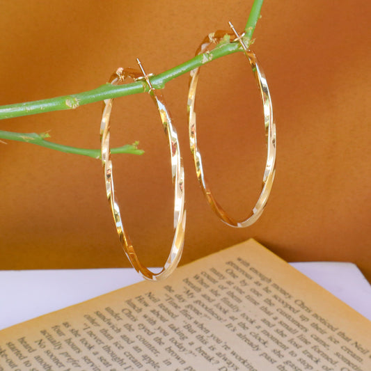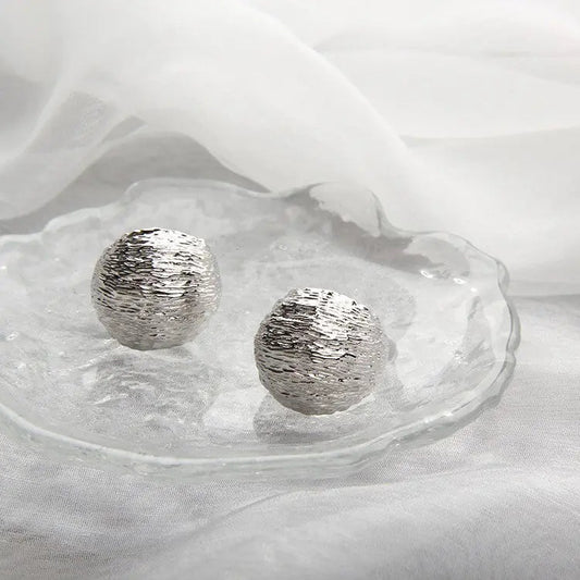 Textured Light Silver Fashion Half Hoop Stud Earrings