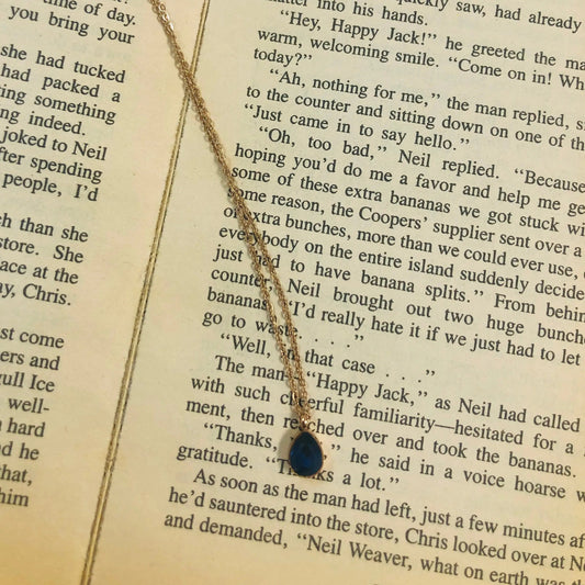 Waterdrop Sapphire Charm Necklace- Stainless Steel