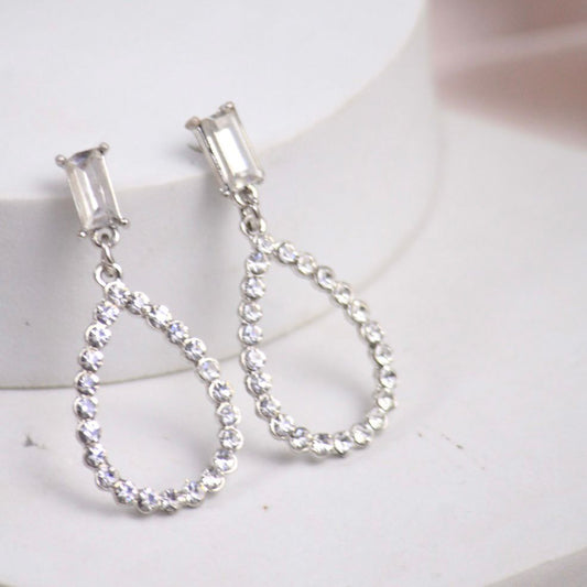 Water-Drop Zirconia Silver Earrings
