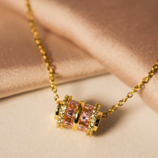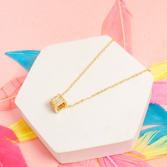 Sold outZircon Inlaid Cubic Necklace - Gold