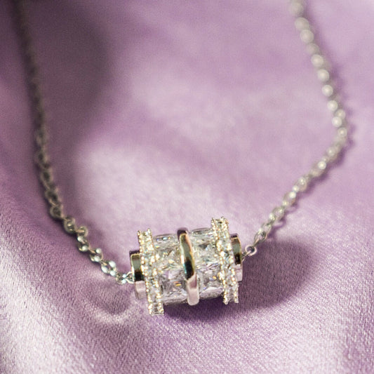 Zircon Inlaid Wheeley Necklace - Silver