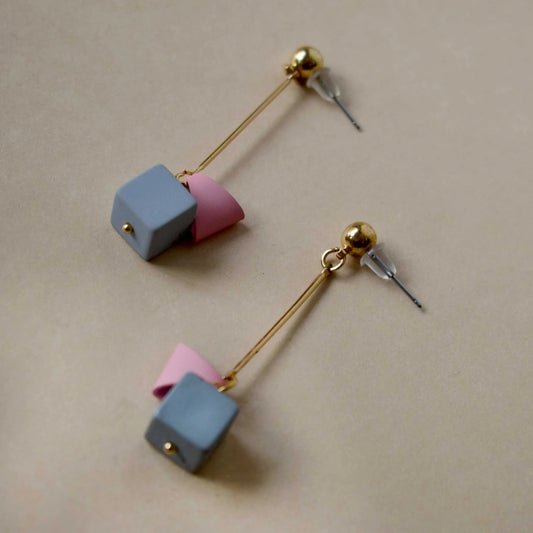 Acrylic Square Pastel Drop Earrings Pink and Blue