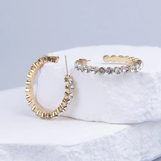 Crystal Zirconia Open Hoop Gold Plated Brim Earrings