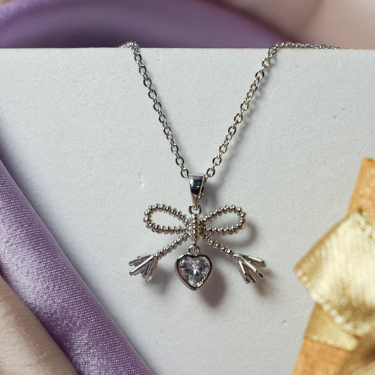 Diamond Bow Silver Necklace