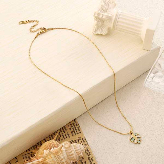 Autum Leaf Green White Necklace