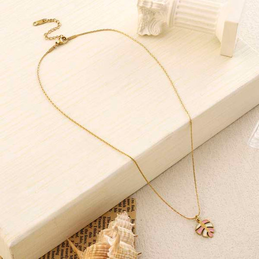 Autum Leaf Peach White Necklace