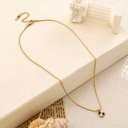 Black & White Clover Gold Necklace